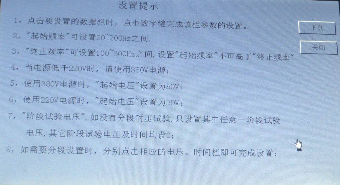 如果沒有階段性耐壓試驗時,只需設置一個階段試驗電壓值和相應的試驗時間,其它階段試驗電壓和試驗時間設為0。