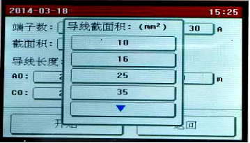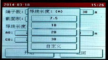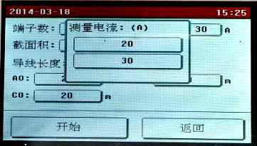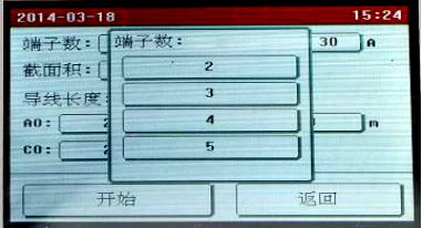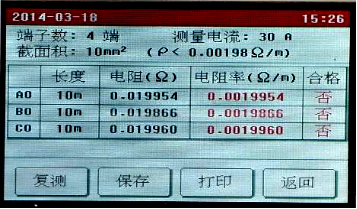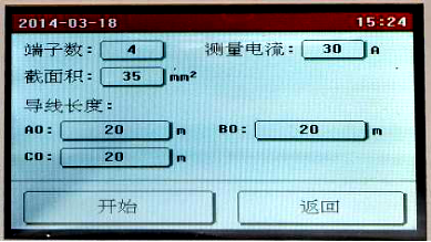 點擊需要修改的參數設置框設置參數,全部設置完成后點擊“開始”按鈕,儀器即按照設置的參數開始自動測量各端子的電阻值,并計算電阻率,自動判斷接地線是否合格。