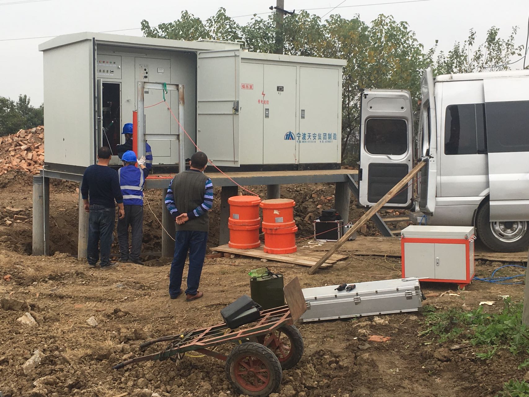 前幾天,我司儀天成電力接到荊州洪湖中鐵十三局集團需求,需要我司給他們做試驗站內(nèi)的高壓絕緣電纜耐壓試驗,以及絕緣電阻測試等方面內(nèi)容工作,我司這邊接到需求,就周日一大早馬不停蹄地帶上了眾多設(shè)備,馬不停蹄地趕往了荊州洪湖目的地,這次我司出動了6名人員過去,設(shè)備這邊涉及有:串聯(lián)諧振系列:包括主機一臺,激勵變壓器1臺,電抗器8件,電容分壓器一件以及多種接線配件等等,然后再還有智能絕緣測試儀器一臺以及一些配件。