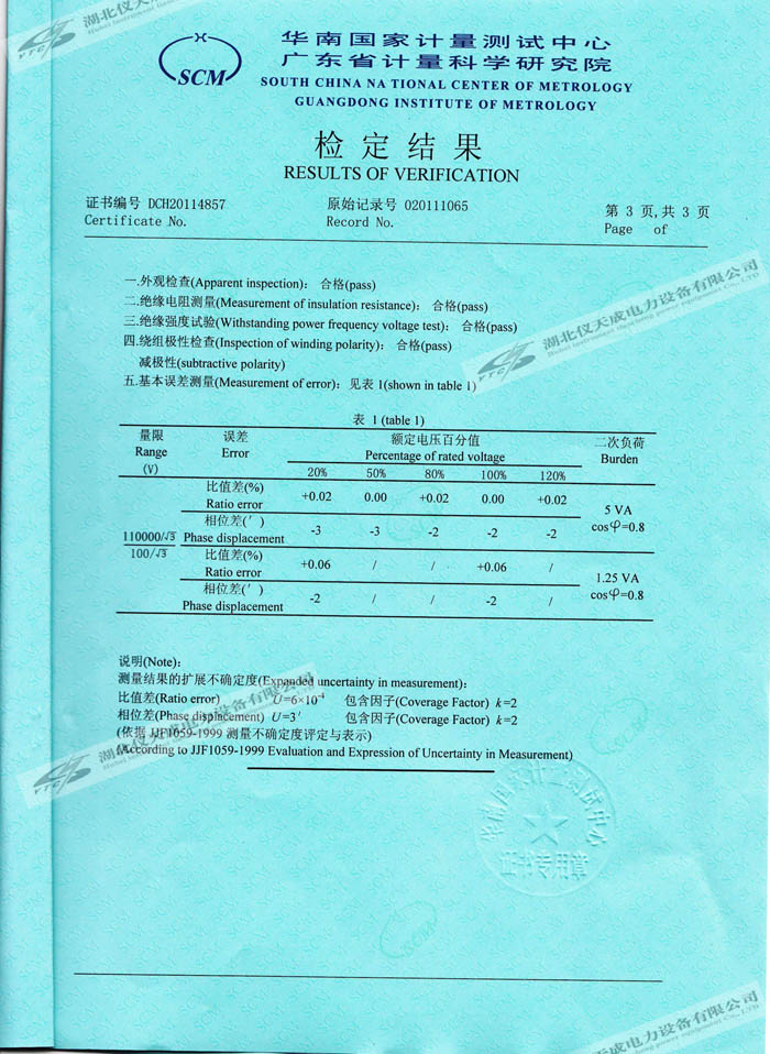 轉載:"JDZ-110電壓互感器的資質證書" 請注明來源于儀天成電力。 更多技術問題請致電儀天成電力客戶服務:027-87876585,技術部專線:027-87876585,在線客服:719388481