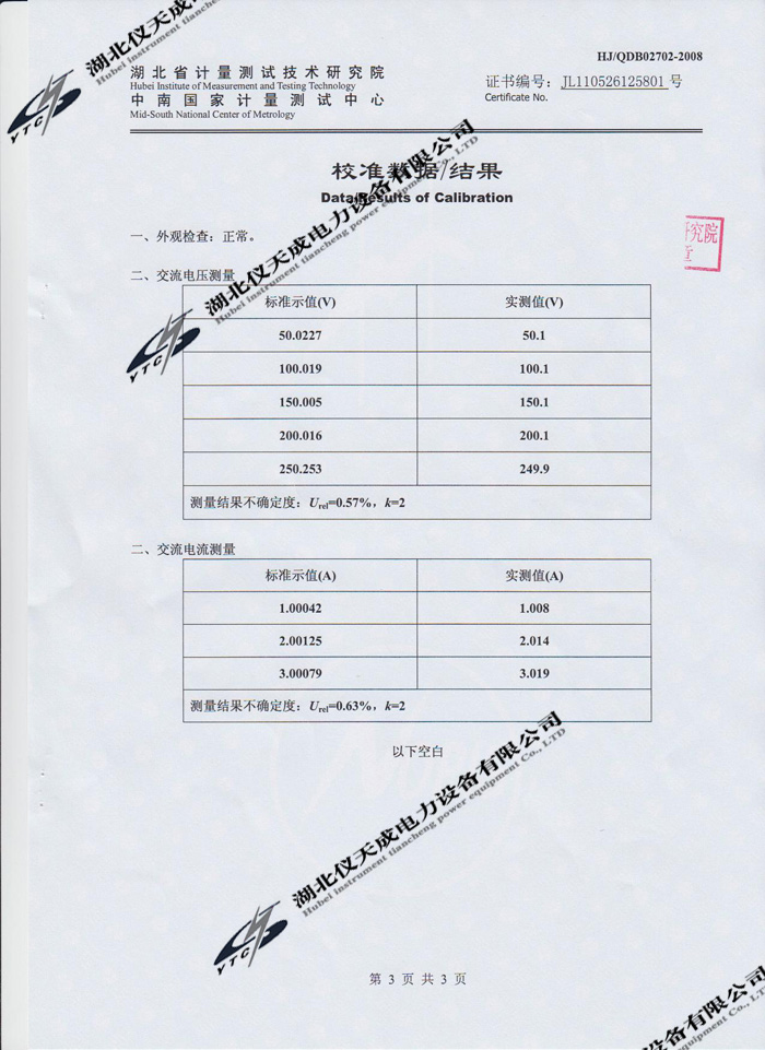 上一篇:YTC2000智能雙顯絕緣電阻測試儀的資質證書 下一篇:YTCZG-60kV/2mA直流高壓發生器的資質證書